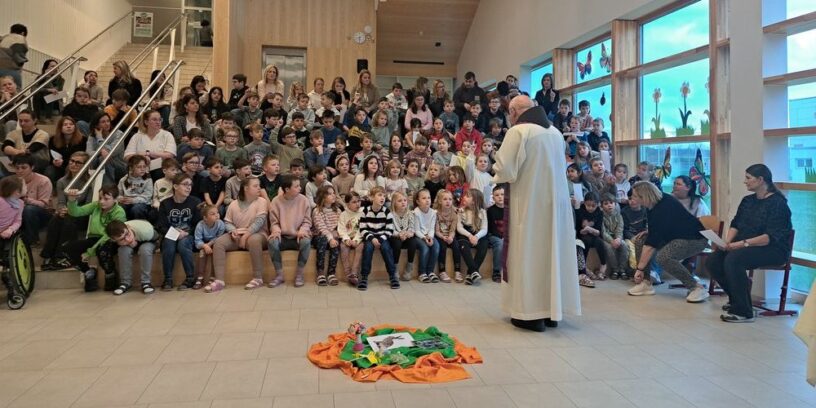 Am 26.3.2026 feierten wir gemeinsam mit der Allgemeinen Sonderschule den Schul-Ostergottesdienst. Auf Grund des stürmischen Wetters wurde dieser kurzfristig in die Aula der Schule verlegt. Vielen Dank an Pater Raphael für sein Verständnis und seine Spontanität.